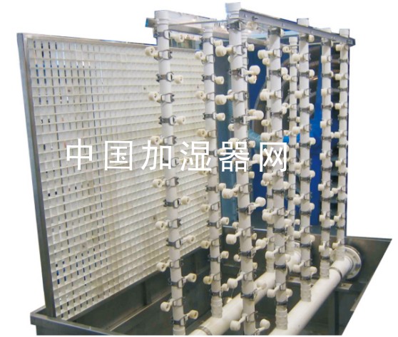 在喷淋式中,空气与喷淋或湿膜表面水分子进行摩擦热湿交换,达到加湿、降温、吸收溶解